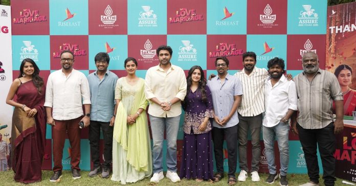 விக்ரம் பிரபு நடிப்பில், அறிமுக இயக்குநர் சண்முகபிரியன் இயக்கி வெளியான ‘லவ் மேரேஜ்’ திரைப்படம் ரசிகர்களின் பேராதரவுடன் வெற்றிகரமாக திரையரங்குகளில் ஓடிக்கொண்டிருக்கிறது. அதையடுத்து படத்தை வெற்றி பெறச் செய்த ரசிகர்களுக்கும், ஊடகத்தினருக்கும் படக்குழுவினர் நன்றி தெரிவிக்கும் வகையில் விழா ஒன்றினை சென்னையில் ஒருங்கிணைத்தனர். படக் குழுவினர் உற்சாகத்துடன் கலந்து கொண்டனர்.