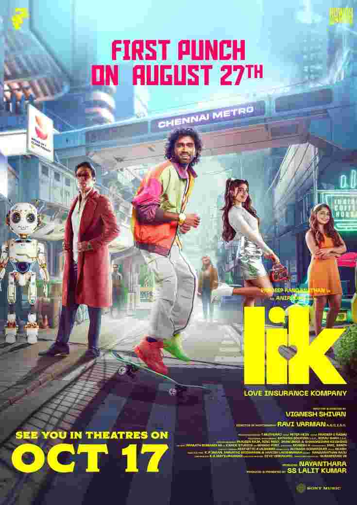 பிரதீப் ரங்கநாதன் கதையின் நாயகனாக நடிக்க, விக்னேஷ் சிவன் இயக்கியிருக்கும் LIK (‘லவ் இன்சூரன்ஸ் கம்பெனி’) திரைப்படம் 2025 வருட தீபாவளிக் கொண்டாட்டமாக வரும் அக்டோபர் 17-ம் தேதி ரசிகர்களை மகிழ்விக்க திரைக்கு வருகிறது.