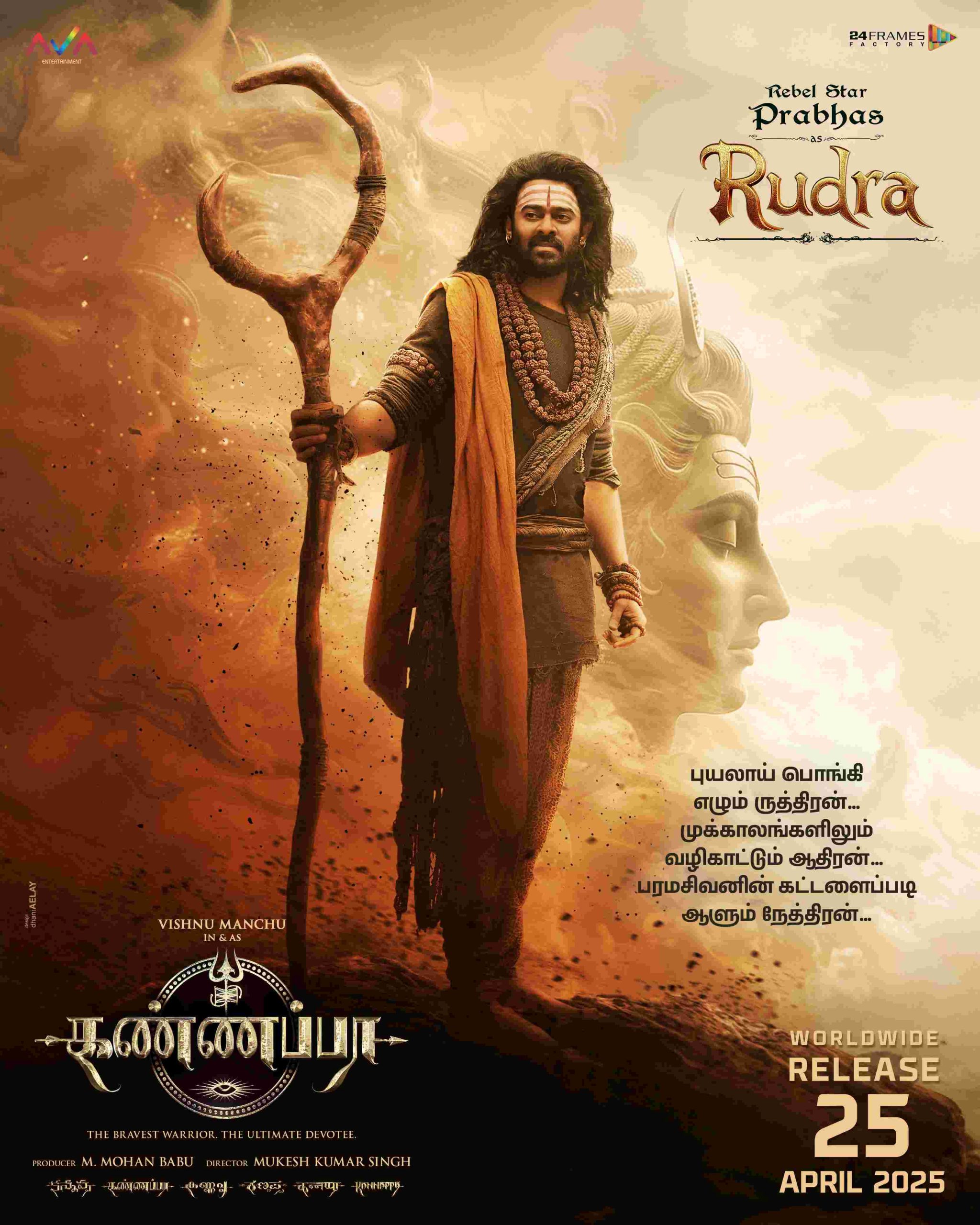 பெரிதும் எதிர்பார்க்கப்படும் கண்ணப்பா படத்திலிருந்து, கடந்த திங்கட்கிழமை ரிபெல் ஸ்டார் பிரபாஸின் ப்ரீ-லுக் வெளியானது ரசிகர்களிடம் பெரும் உற்சாக அலையை உருவாக்கியது. இதைத் தொடர்ந்து நடிகர் விஷ்ணு மஞ்சுவின் மிகவும் எதிர்பார்க்கப்படும் பான்-இந்தியப் படமான கண்ணப்பா படத் தயாரிப்பாளர்கள் இப்போது ரிபெல் ஸ்டார் பிரபாஸின், “ருத்ரா” கதாப்பாத்திர ஃபர்ஸ்ட் லுக் போஸ்டரை வெளியிட்டுள்ளனர். போஸ்டர் பிரபாஸை தெய்வீக மற்றும் பிரமிக்க வைக்கும் ஒரு சக்திவாய்ந்த பாத்திரத்தில் அறிமுகப்படுத்துகிறது, இது படத்தின் மீதான எதிர்பார்ப்பை மேலும் அதிகரித்துள்ளது.