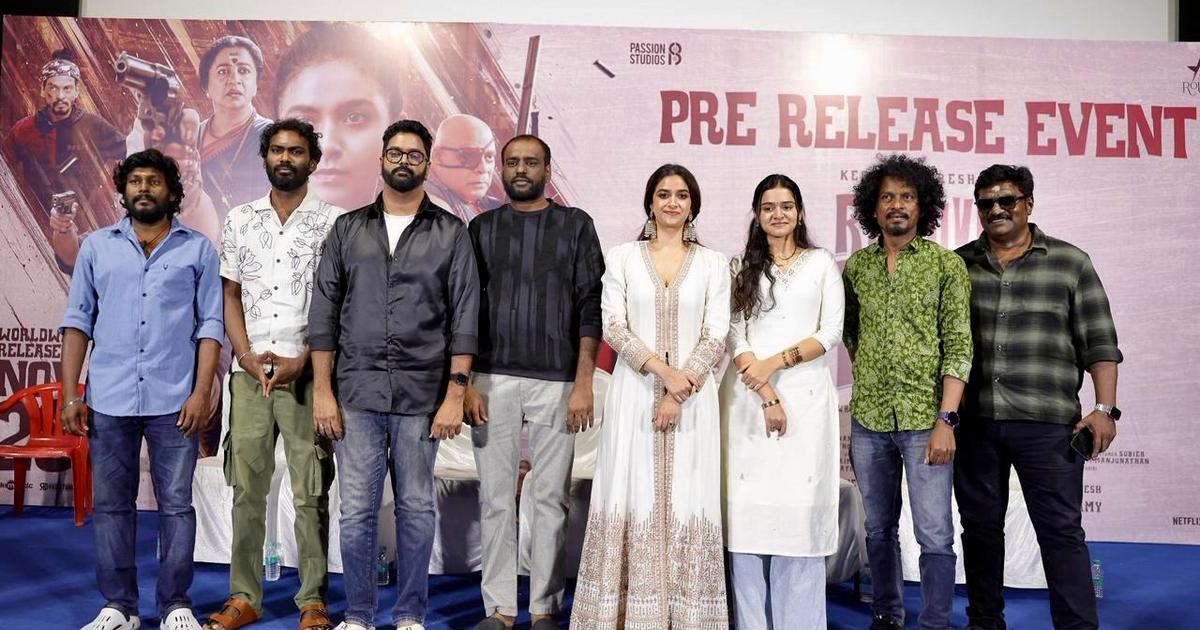 கீர்த்தி சுரேஷ் நடிக்கும் ‘ரிவால்வர் ரீட்டா’ திரைப்படம் வரும் நவம்பர் 27 அன்று வெளியாகவுள்ளது. அதையொட்டி படத்தின் முன் வெளியீட்டு நிகழ்வு சென்னையில் நடந்தது.