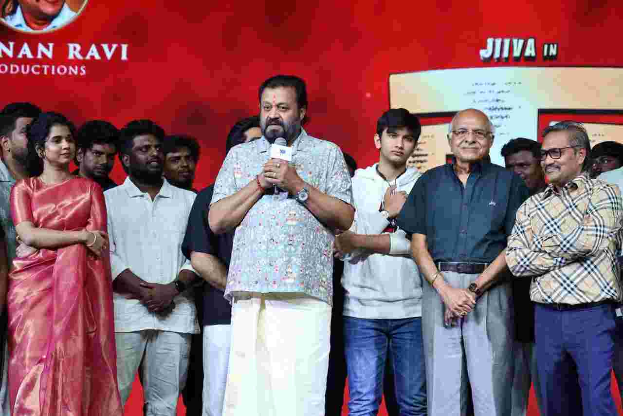 நிகழ்வில் நடிகர் ஜீவா பேசுகையில், ”மேடையில் என்னுடன் இருக்கும் படக்குழுவினர் அனைவரும் நான்கு ஐந்து மாதங்கள் குமுளியில் ஒன்றாக குடும்பம் போல் தங்கி இருந்தோம். அனைவரும் ஒன்றிணைந்து நல்ல மனதுடன் இந்தப் படத்தில் பணியாற்றினோம். இந்த படம் வெளியாகி அனைவருடைய மனதிலும் இடம் பிடித்திருக்கிறது. தமிழ் மக்களின் மனதில் இடம் பிடிக்க வேண்டும் என்ற ஒரே எண்ணத்தில் தான் பணியாற்றினோம். படப்பிடிப்பு அனுபவங்களை ஏராளமாக சொல்லிக்கொண்டே போகலாம். தலைவர் தம்பி தலைமையில் படத்திற்கு இவ்வளவு பெரிய வெற்றி கிடைத்து இருப்பதற்கு அனைவரும் ஒன்றாக இணைந்து பணியாற்றியதும் ஒரு காரணம். அதனால் இதற்கு முழு முதல் காரணமான இயக்குநர் நிதிஷுற்கு முதல் நன்றி. அவர்தான் இந்த படத்தின் ஹீரோ. அவர்தான் இங்கு கூடியிருக்கும் ஒவ்வொரு கலைஞர்களிடம் இருக்கும் திறமையை வெளியே கொண்டு வந்தார்.